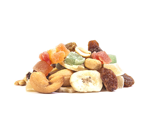 Ingredientes: 31% banana frita (banana, óleo de coco e açúcar), 25,5% Frutas desidratadas